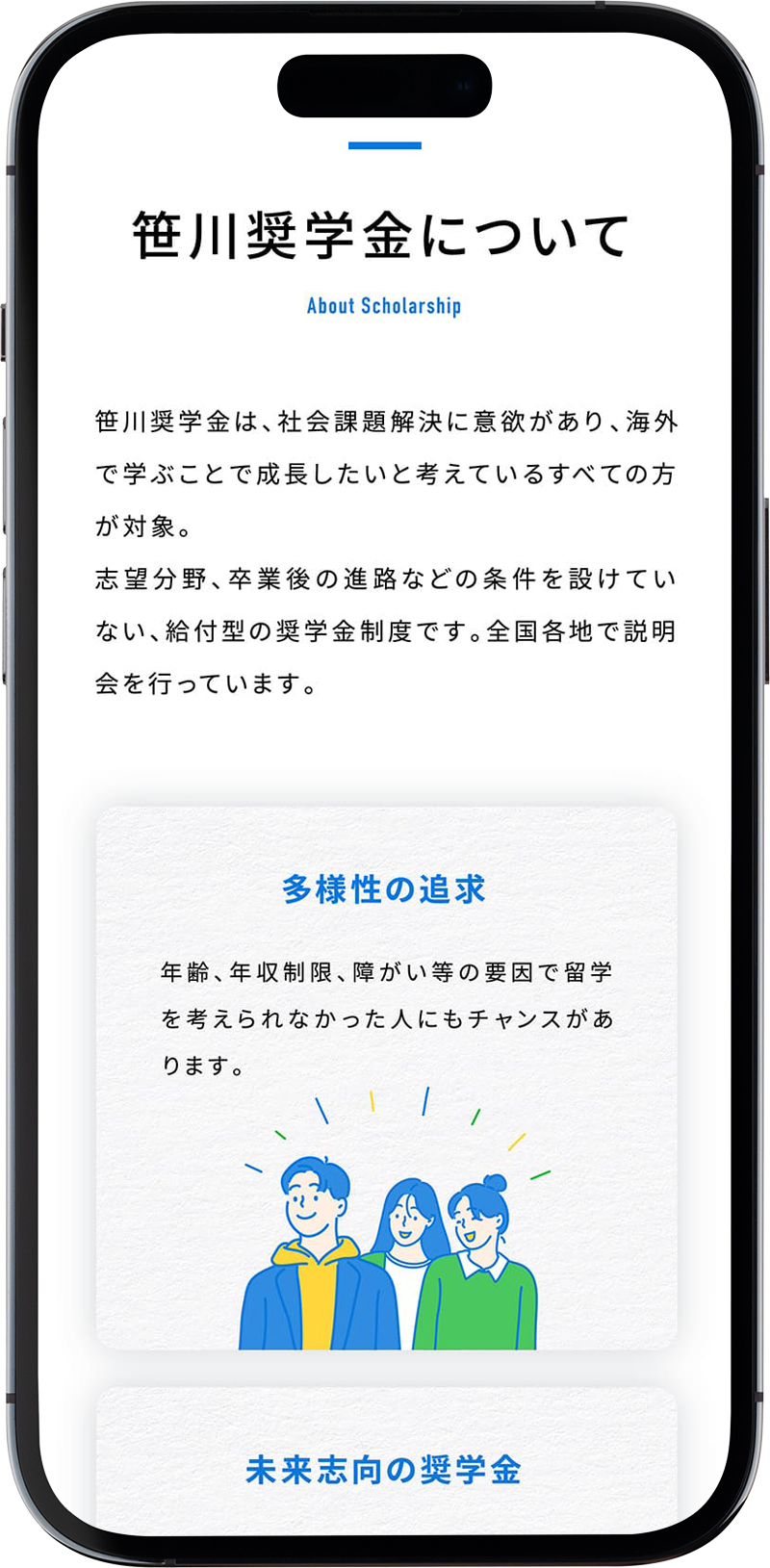 CLIENT:笹川平和財団 担当領域:Art Direction、Web Direction、Design 制作媒体:WEB(PC&スマホ) URL:https://scholarship.spf.org/